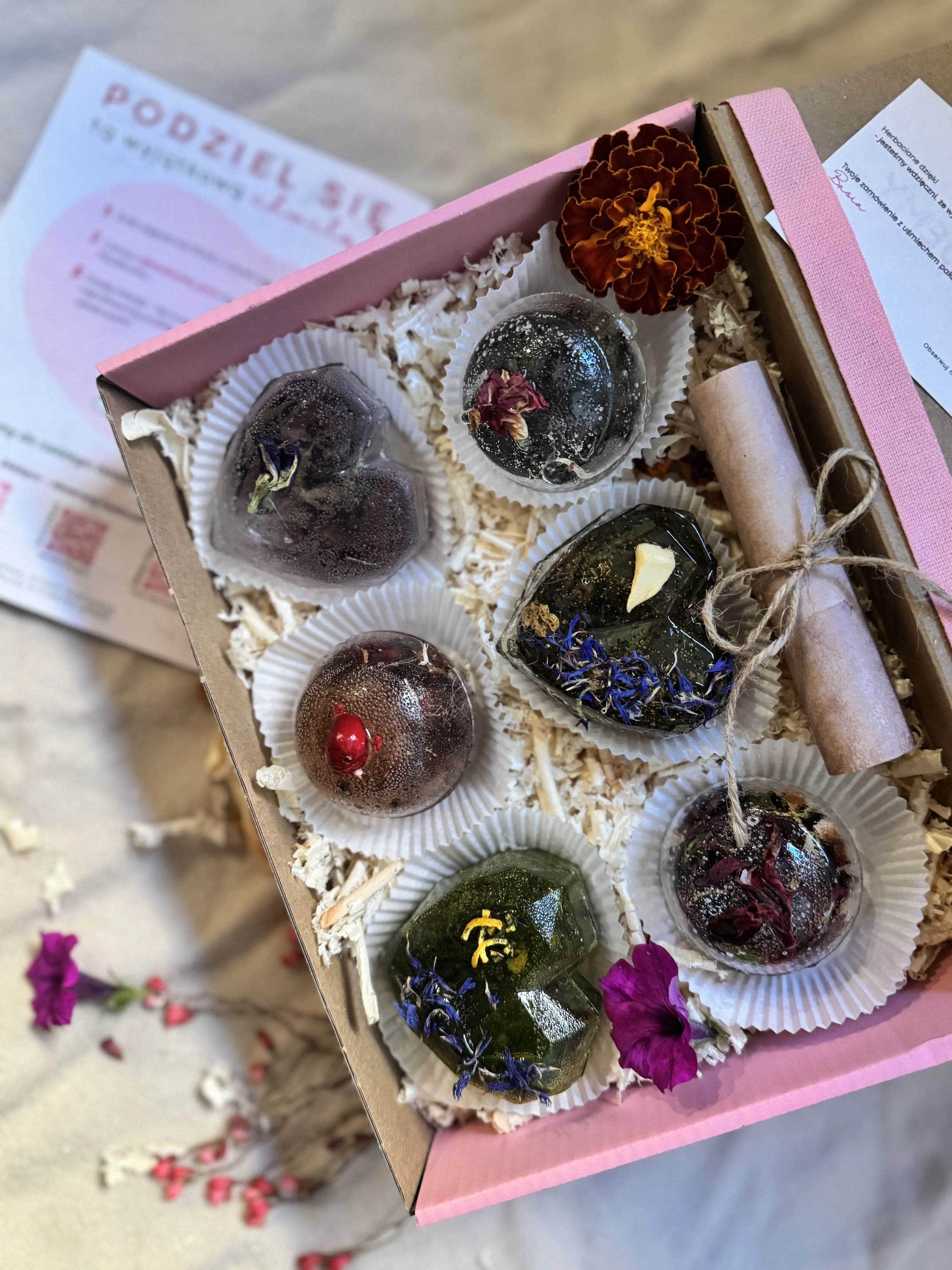 ZAMÓW tutajIdealny na długi weekend lub małą herbacianą degustację ze znajomymi. Wybierz dowolny kształt (same kule lub same serca) i ciesz się czterema chwilami spokoju.